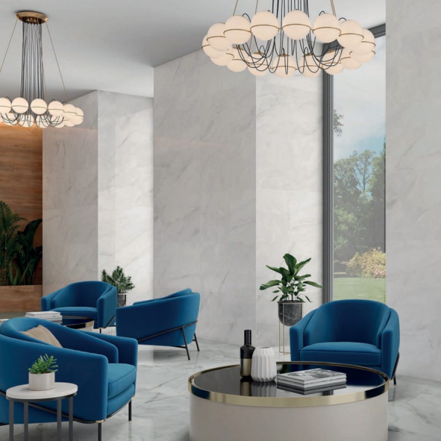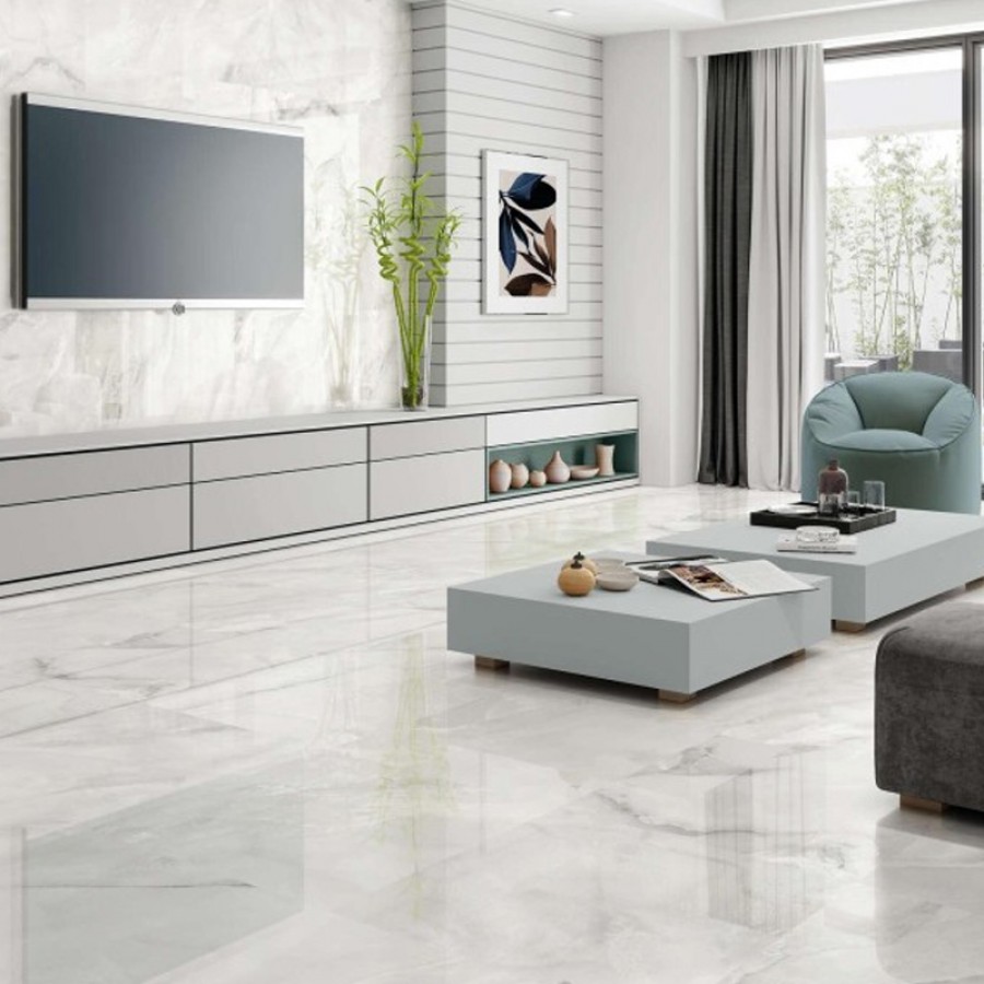 Carrelage rectifié espagnol 60×60 cm, finition brillante blanche. Qualité premium A’, idéal pour les intérieurs modernes – exclusivité Vistacer.